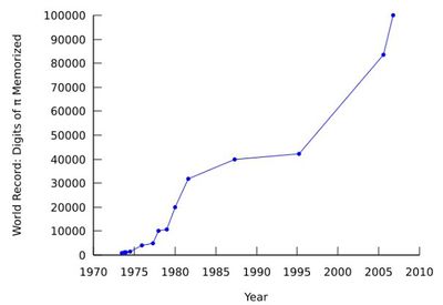 Ever since Abraham began memorizing digits of in the mid 90's, the world record for the number of digits of memorized has skyrocketed.